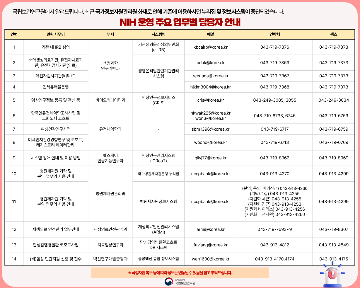 질병관리청(청장 임승관)은 9월 26일 발생한 국가정보자원관리원 화재로 질병관리청 및 소속기관 홈페이지,